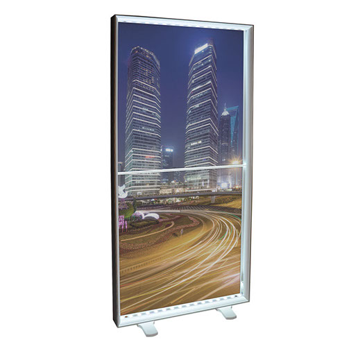 Die LightBoXx Mobile ist die ideale Lösung Ihre Motive durch eine schnelle und kostengünstige Lösung mit Hinterleuchtung in Szene zu setzen! Das Display wird dank der innen liegenden LED-Schienen in beide Seiten ausgeleuchtet. Das Material ist weiß gefärbter, leichter Kunststoff mit stabilen schwenkbaren Füßen. Stromkabel und Verbinder sind im Rahmen integriert. Von Anfang bis Ende durchdachtes Display, welches dank Stecksystem schnell und ganz ohne Werkzeug aufgebaut ist. Der Transport erfolgt sicher und kompakt in praktischer, gepolsterter Tasche